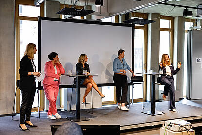 Die Interaktive Talkrunde „People Culture: Von Topsharing, hybriden Führungsherausforderungen und der neuen „Macht“ der Mitarbeitenden“ mit Sarah Schmidt, Leiterin Geschäftsbereich Versicherungen, SAP Deutschland, Isabella Martorell Naßl, Mitglied des Vorstandes, Versicherungskammer Bayern, Eva Grenz und Stephanie Dickes, Heads of People Management im Topsharing, Allianz Beratungs- und Vertriebs AG, diskutierte die neuen Anforderungen an Führung angesichts eines extremen Bewerbermarktes und der damit verbundenen Verschiebung der „Machtverhältnisse“.