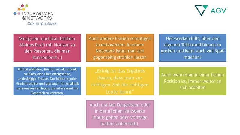 Wie geht kluges Netzwerken – auch ins obere Management? Simone Kauffeld, Professorin für Arbeits-, Organisations- und Sozialpsychologie an der Technischen Universität Braunschweig, machte deutlich, dass gute Business-Kontakte unmittelbaren Einfluss auf hochkarätige Jobs, mehr Gehalt und Beförderungen haben. Frauen sind oft auf Kollegenebene gut verdrahtet, unterschätzen aber ihren eigenen Wert für ein Netzwerk. Wer in die männerdominierte Führungsriege vordringen wolle, für den lohne es sich männliche Allies zu finden. Eva-Miriam Böttcher, Leiterin Konzernpersonal bei der Wüstenrot & Württembergische AG und Business Coach, berichtete aus ihrer persönlichen Erfahrung mit mehreren Leitungspositionen in unterschiedlichen Unternehmen sowie Branchen und als Working Mom mit zwei Töchtern, wie man sich ein tragfähiges Netzwerk aufbauen kann. Wichtig sei, in alle Richtungen Kontakte zu knüpfen (der Trainee von heute kann morgen CEO sein) und vor allem authentisch zu sein. „Win-Win“-Situationen zu schaffen, etwas beizutragen (das könne jeder), sei entscheidend. Auch bei wenig Zeit helfe es, sich aktiv und bewusst auf wenige Formate zu konzentrieren. Aktives Netzwerken sei auch geprägt von „Serendipity“, denn durch Spürsinn und Zufall könne oft branchenübergreifend etwas unerwartetes Neues entstehen.