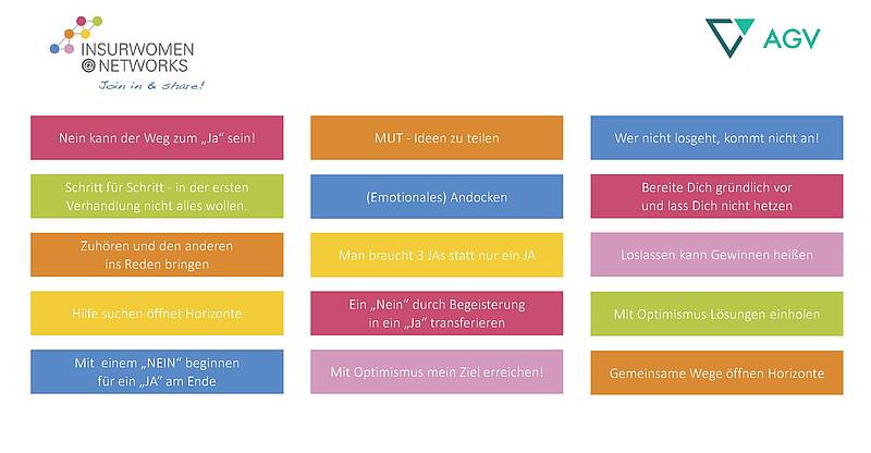 Von außen betrachtet wirken Verhandlungssituationen manchmal simpel. In der Praxis ist es als Verhandlungsführer mit guten, rationalen Argumenten und einem klaren Ziel vor Augen trotzdem oft schwierig das Gegenüber mittels Vernunft zu überzeugen. Das Verhandlungsergebnis ist oft ein „fauler Kompromiss“, den keiner richtig gut findet. Im Rahmen eines interaktiven Workshops zeigte Barbara Bock-Walenta, Executive Coach & Trainerin bei Bossert Associates, unserer „INSURWOMEN@NETWORKS“-Community, wo die Kraft der Überzeugung wirklich liegt. Sie gab uns wirkungsvolle Techniken an die Hand, wie die Abwehrhaltung des Verhandlungspartners aufgelöst und das eigene Ziel in einem echten „win-win“ für alle realisiert wird. Entscheidungen werden über den Verstand und das limbische System im Gehirn – unser emotionales Erfahrungsgedächtnis – getroffen. Der Erfolgsschlüssel ist „Emotional Buy-In“ für das eigene Projekt zu kreieren, d. h. den Verhandlungspartner für die eigene Vision gewinnen und überzeugen, gemeinsam auf das Ziel hinzuarbeiten. Die Teilnehmerinnen konnten die Inhalte „hands on“ in Breakout-Sessions vertiefen.